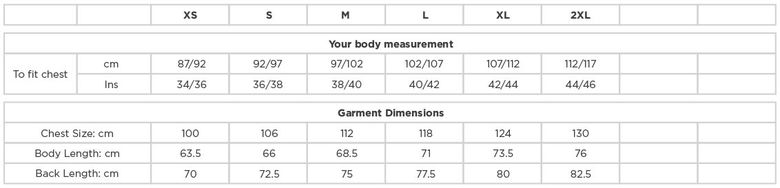 Wasserdicht (5.000mm Wassersäule), atmungsaktiv (5.000g/m² in 24h), vorgeformte Ellbogen, verschweißte lasergeschnittene Taschen, verschweißte hydrophobe Membran, Materialoberfläche mit Abperleffekt, maximale Temperatur- und Feuchtigkeitsregulierung, winddicht