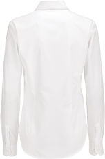 Taillierter Schnitt mit Abnäher an Brust, Vorder- und Rückenteil, sanft geschwungener weiblicher Kragen, eckige, mit 2 Knöpfen verstellbare Manschetten und zusätzlichen Knopflöchern für Manschettenknöpfe, Manschettenstulpen, abgerundeter Saum unten, im Kreuzstich angenähte passende Perlmuttknöpfe, letztes Knopfloch quer, 1 Ersatzknopf, Easy Care, 50° waschbar