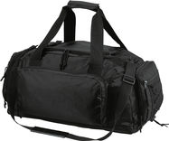 Abnehmbarer, verstellbarer Schultergurt mit Antirutsch, große Vordertasche mit Reißverschluss, Seitentaschen mit Netz- und Kordelbesatz, geräumiges Hauptfach mit Zurrgurten, Maße: 57x30x28cm